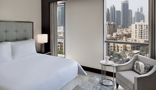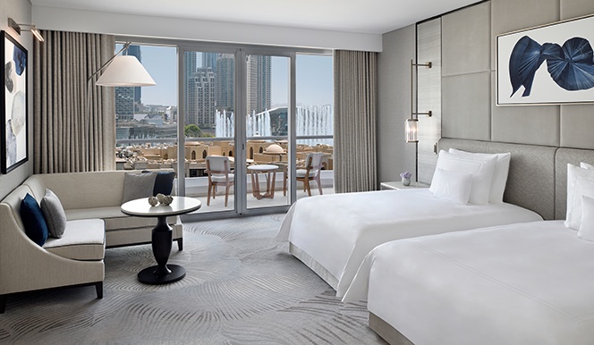 Двуспальная кровать king-size или 2 односпальные кровати, балкон, вид на Burj Khalifa или фонтаны, диван-софа, зона гардеробной со встроенным шкафом и туалетным столиком, ванная комната с ванной и душем, эксклюзивный доступ в клубный лаунж, возможны совмещённые номера данной категории (через небольшое фойе, двуспальная кровать king-size и 2 односпальные кровати);