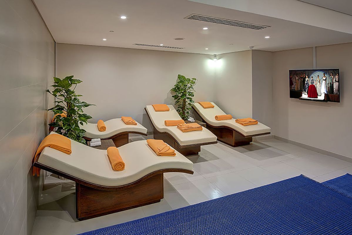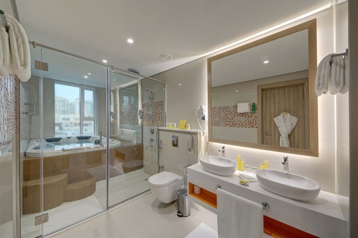 В номерах: кондиционер с климат-контролем, утюг и гладильная доска, телевизор со спутниковыми каналами, телефон, Wi-Fi, фен, банные принадлежности, набор для приготовления чая/кофе, мини-холодильник, сейф, халат.