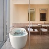 Двуспальная кровать king-size или 2 односпальные кровати, гостиная зона с диваном, окна от пола до потолка, ванная комната с ванной  душем, вид на бассейн;