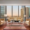 3 спальни с двуспальными кроватями king-size, отдельная гостиная комната, 3 ванные комнаты, гостевой туалет, окна от пола до потолка, балкон, вид на башню Burj Khalifa и закат.