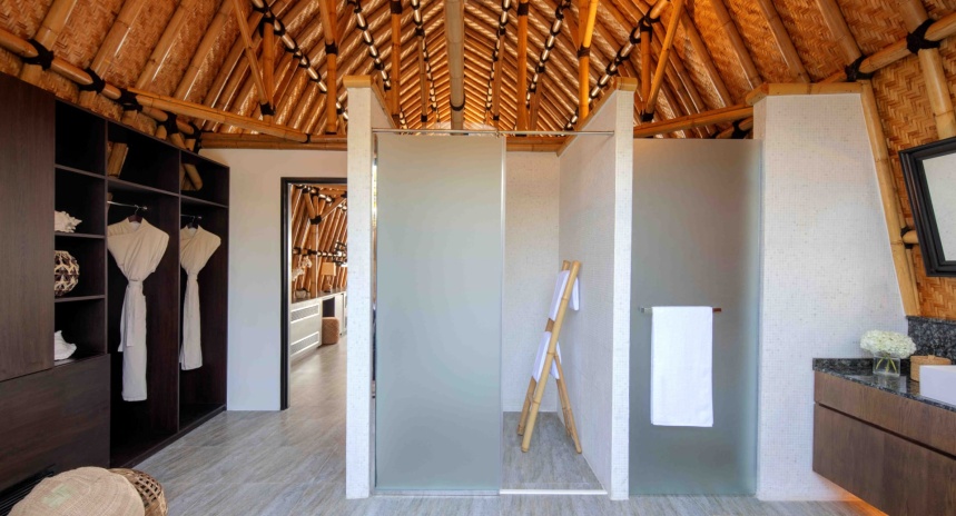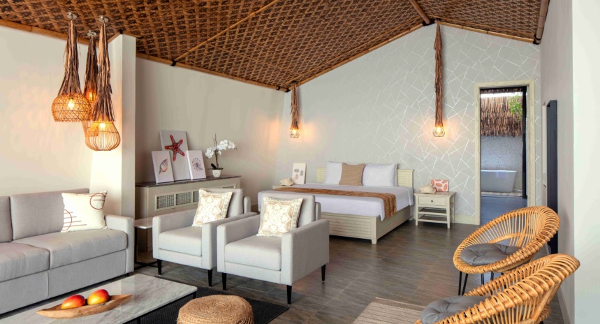 Двуспальная кровать king-soze, гостиная зона с диванами, ванная комната с ванной под открытым небом, прямой доступ к пляжу, частный бассейн, лежаки, вид на океан;