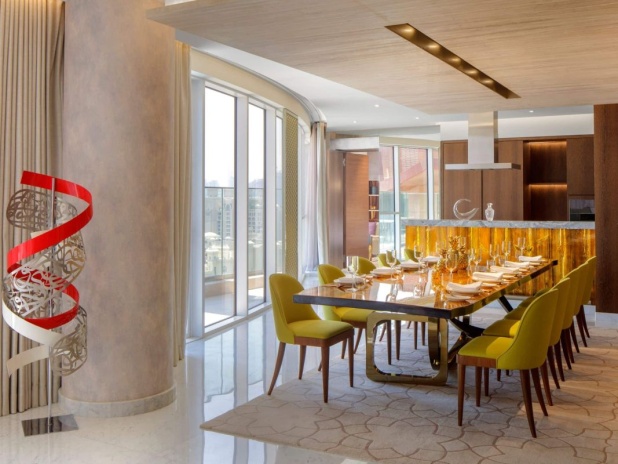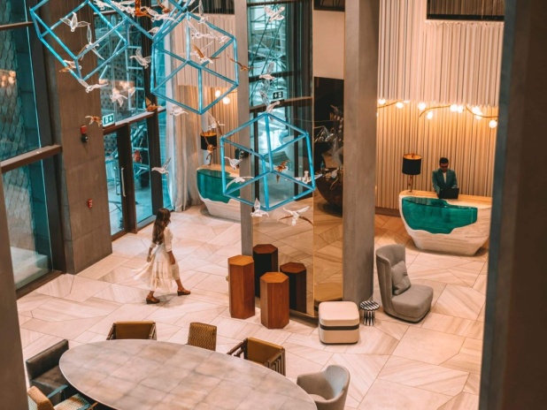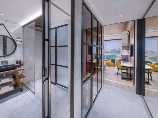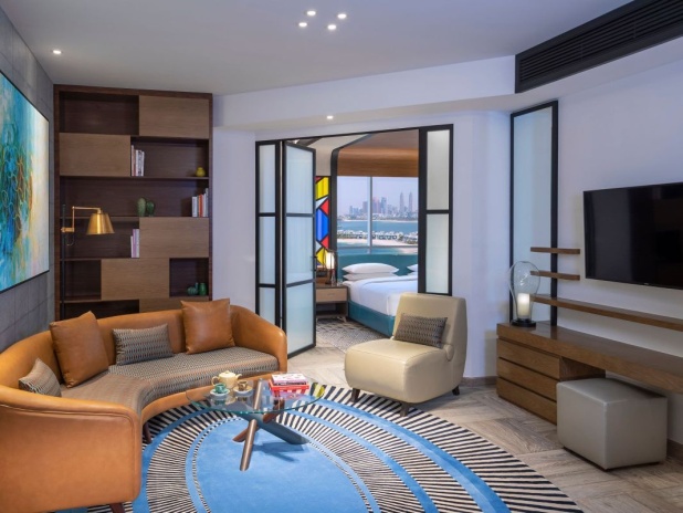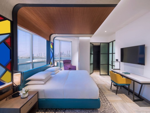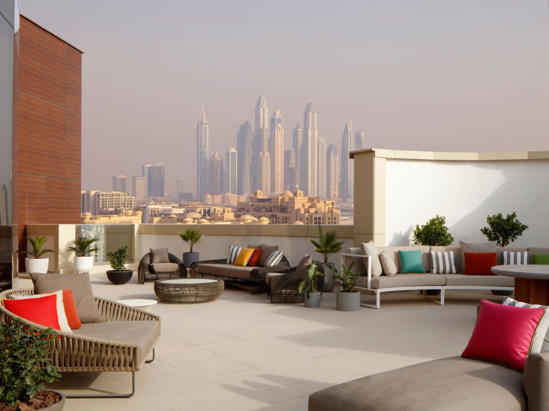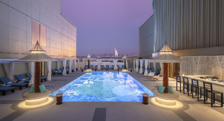 Andaz Dubai The Palm, by Hyatt представляет собой бутик-отель, расположенный на знаменитом острове Пальма Джумейра в Дубае. Он привлекает гостей своим уникальным концептуальным подходом, сочетающим современный дизайн, вдохновленный местной культурой, с роскошными удобствами. Отель состоит из одного 15-ти этажного здания и предлагает 216 номеров. К услугам гостей 2 открытых бассейна, один из них только для взрослых, тренажёрный зал, несколько ресторанов и баров, а также частная пляжная зона.