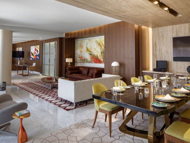 В номерах: бесплатный мини-бар с безалкогольными напитками и снеками в день заезд, кофемашина, набор для приготовления чая/кофе, бутилированная питьевая вода, Wi-Fi, телефон с голосовой почтой, телевизор, фен, банные принадлежности, халат, тапочки, индивидуальный климат-контроль, утюг и гладильная доска, письменный стол, сейф.