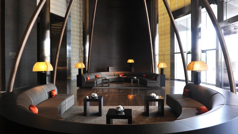 Отель Armani Hotel Dubai занимает несколько этажей самой высокой в мире башни «Башня Халифа» (Burj Khalifa). Все детали интерьера и мебель отеля были разработаны командой Джорджио Армани. Номера расположены на 5-8, 38 и 39 этажах здания. В отделке стен присутствуют элементы из флорентийской кожи ручной работы, покрытие пола – японские татами, а ванные комнаты отделаны бразильским мрамором.