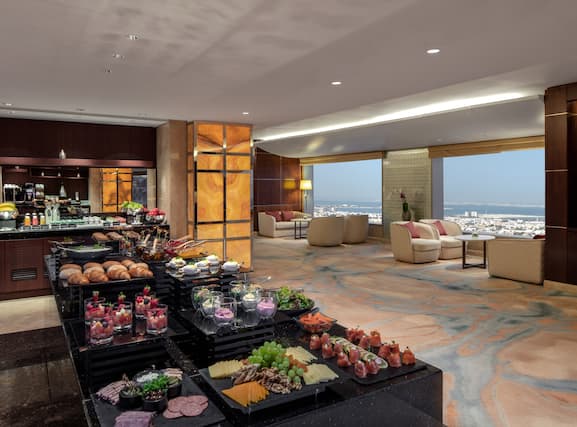 Высокий этаж, спальня с 2 двуспальными кроватями, отдельная гостиная комната с диваном и обеденным столом, ванная комната с ванной и душем, вид на океан, с доступом в Executive Lounge на 24 этаже;