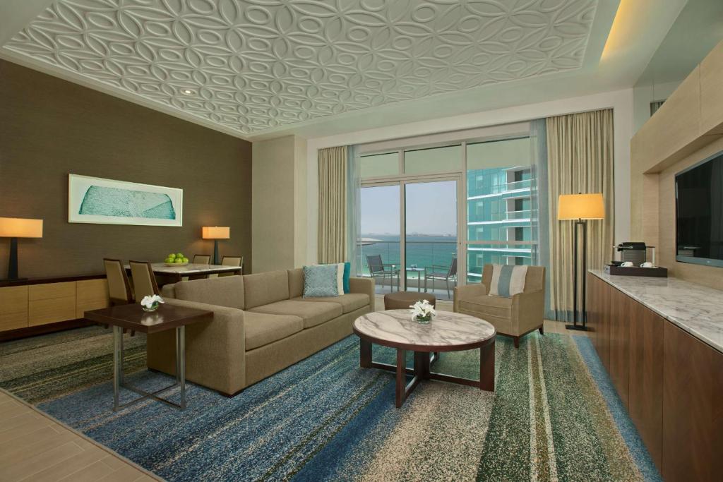 Из окон открывается вид на Персидский залив и The Palm Jumeirah (знаменитый искусственный остров). К услугам гостей тренажёрный зал, открытый бассейн, спа-центр и частный пляж.