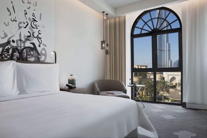 Двуспальная кровать king-size или 2 односпальные кровати, ванная комната с душем, вид на Burj Khalifa;