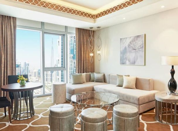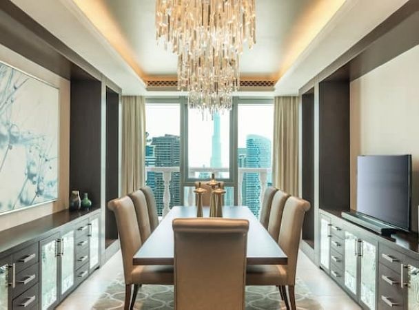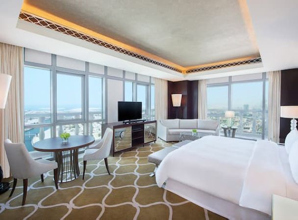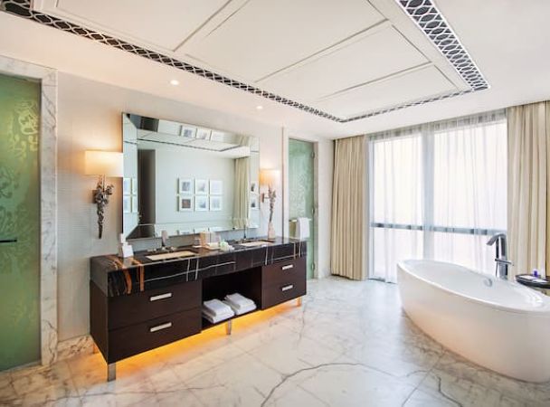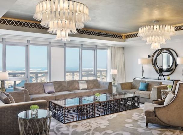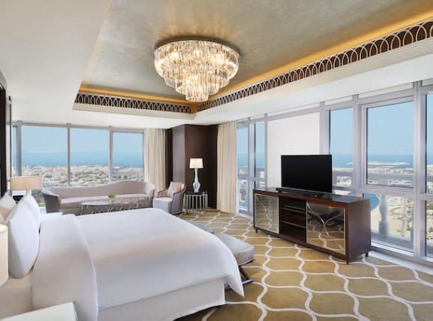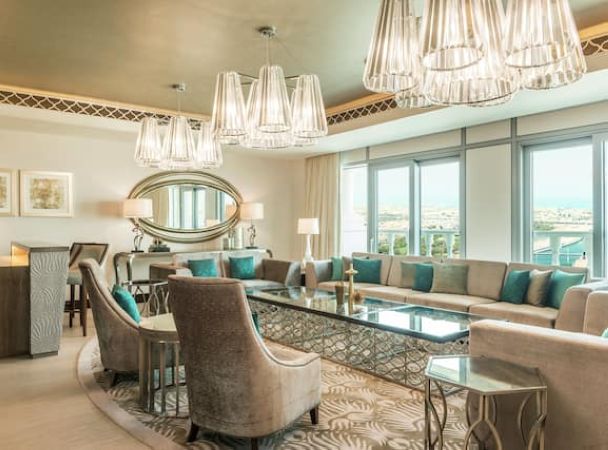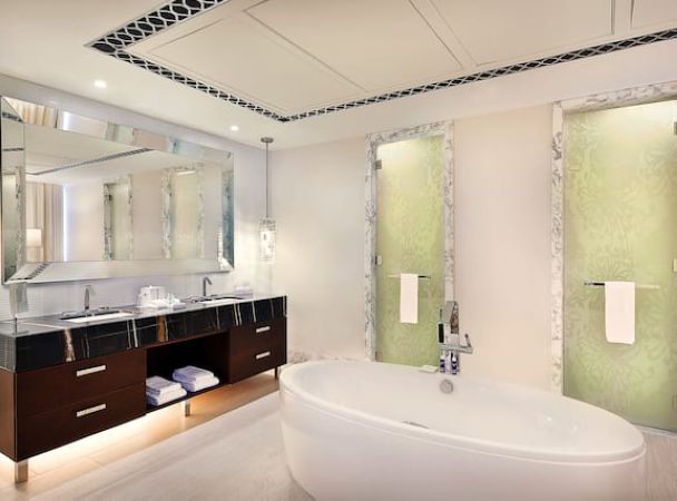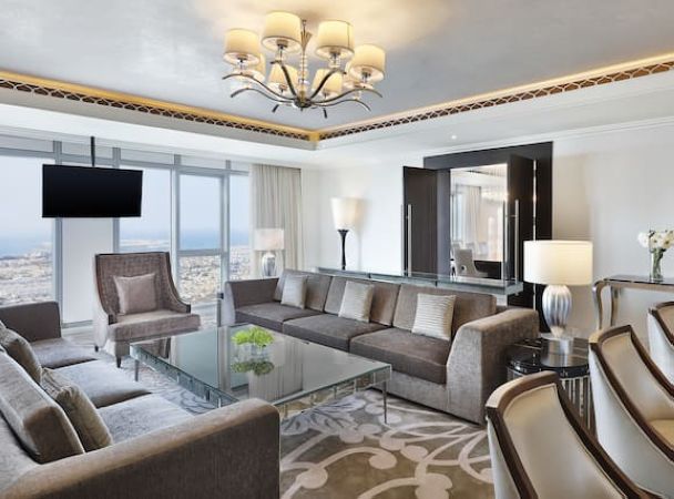 Номер расположен на 40 этаже, 2 спальни с кроватями king-size, отдельная гостиная комната с диваном и обеденным столом на 10 человек, 2 ванные комнаты с ванной и душем, бильярдный стол, доступ в представительский лаунж;