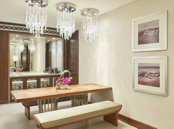 Основная спальня с кроватью king-size, гостиной зоной и ванной комнатой с ванной и душем, вторая спальня с кроватью king-size, отдельная гостиная комната с зоной бара и обеденным столом на 10 человек, доступ в представительский лаунж;