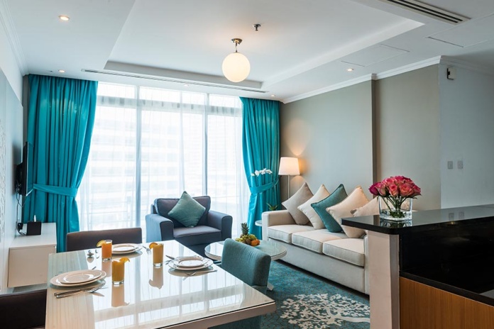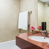 В номерах: холодильник, стиральная машина, холодильник, Wi-Fi, сейф, телефон, фен, халат, тапочки, телевизор, набор для приготовления чая/кофе, кондиционер, утюг и гладильная доска, микроволновая печь.