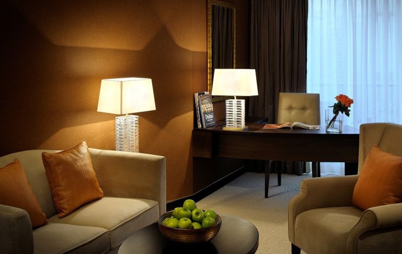 Спальня с двуспальной кроватью king-size, отдельная гостиная комната с диваном, ванная комната с ванной и душем, вид на город, эксклюзивный доступ в Lounge Club, завтрак включён, бесплатная глажка 1 предмета одежды за всё время пребывания;