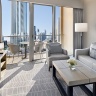 Спальня с двуспальной кроватью king-size и встроенным шкафом, отдельная зона с туалетным столиком, отдельная гостиная комната, ванная комната с ванной и душем, балкон, вид на Dubai Downtown, завтрак включён;