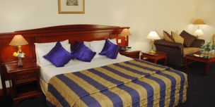Двуспальная кровать king-size, ванная комната с джакузи, балкон, вид на город (возможны совмещённые номера);