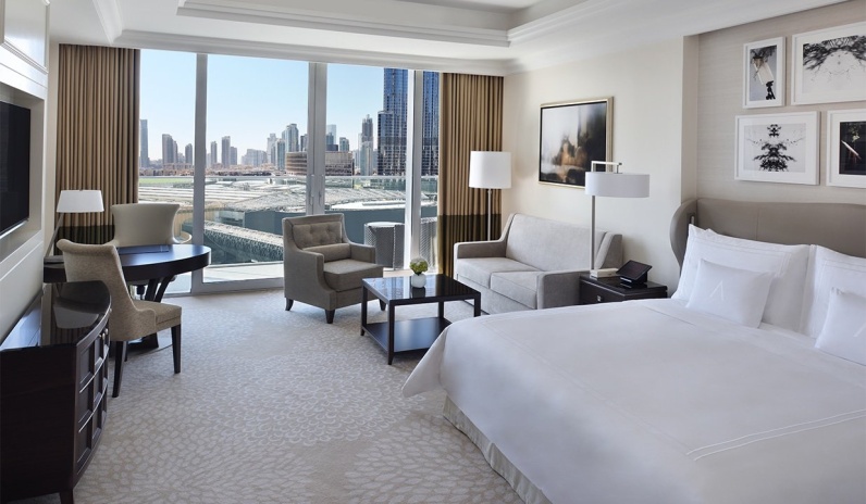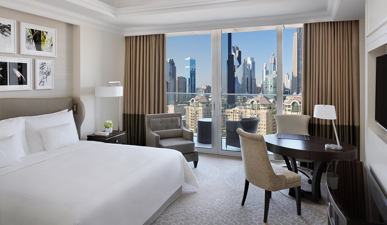 Расположен на 13 этаже, 2 спальни: двуспальная кровать king-size и 2 односпальные кровати, отдельная гостиная комната, 2 ванные комнаты, балкон, вид на Dubai International Financial Centre, эксклюзивный доступ в клубный лаунж, бесплатно глажка 1 предмета одежды;