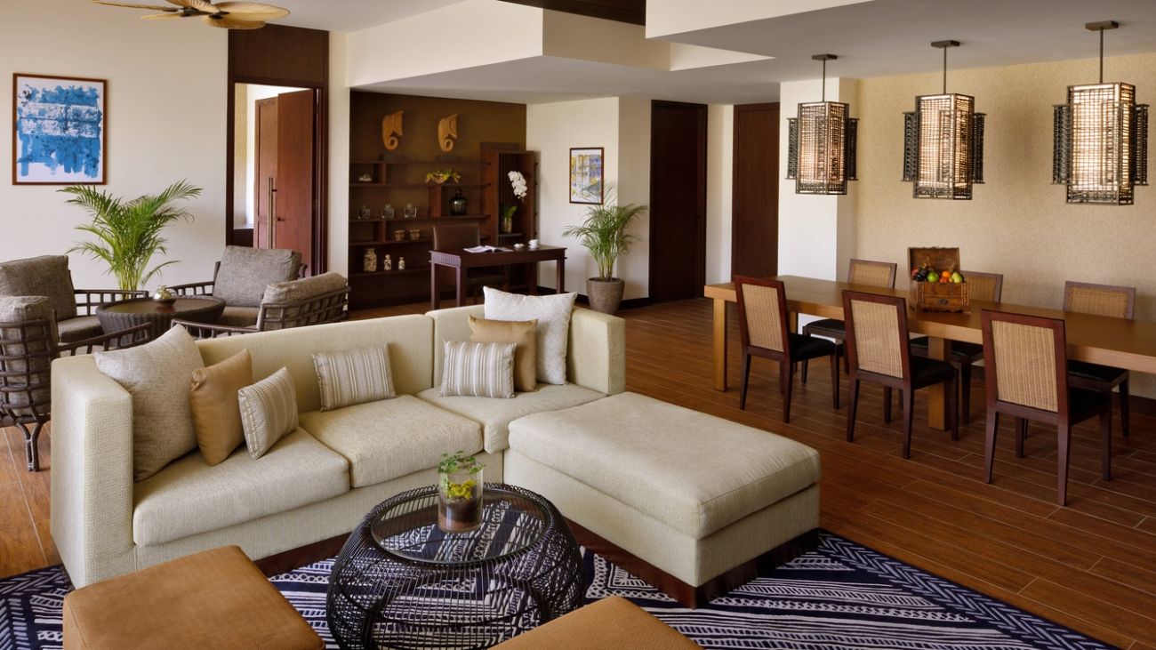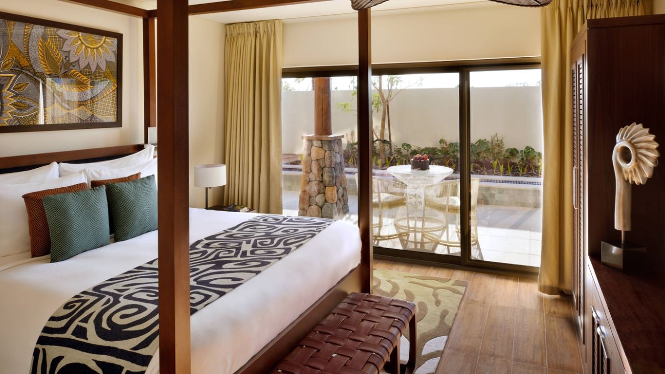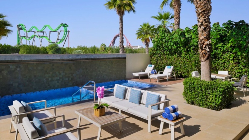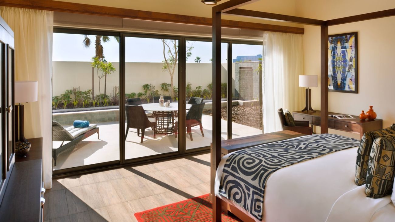 3 спальни: 2 двуспальные кровати king-size и 2 двуспальные кровати,  отдельная гостиная комната с диваном и обеденным столом, 4 ванные комнаты, мини-кухня, балкон, патио, персональный бассейн, посещение парка Dubai Parks and Resorts.