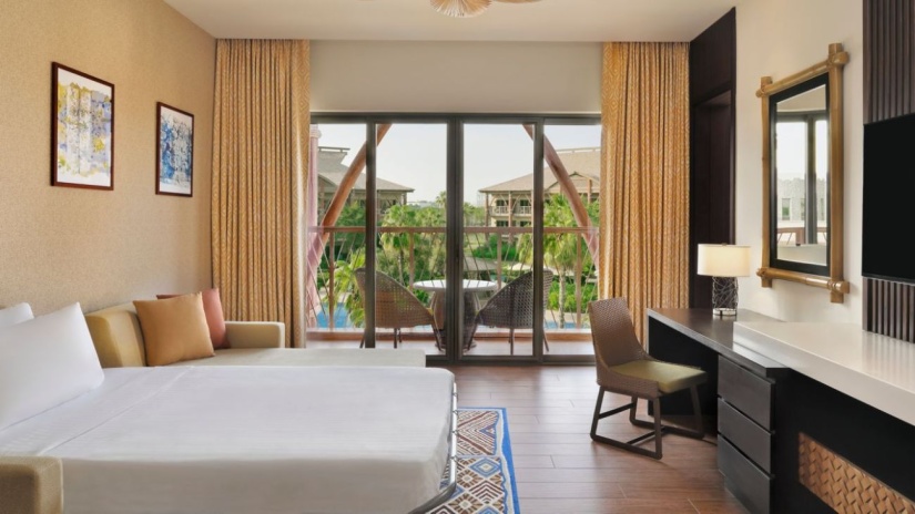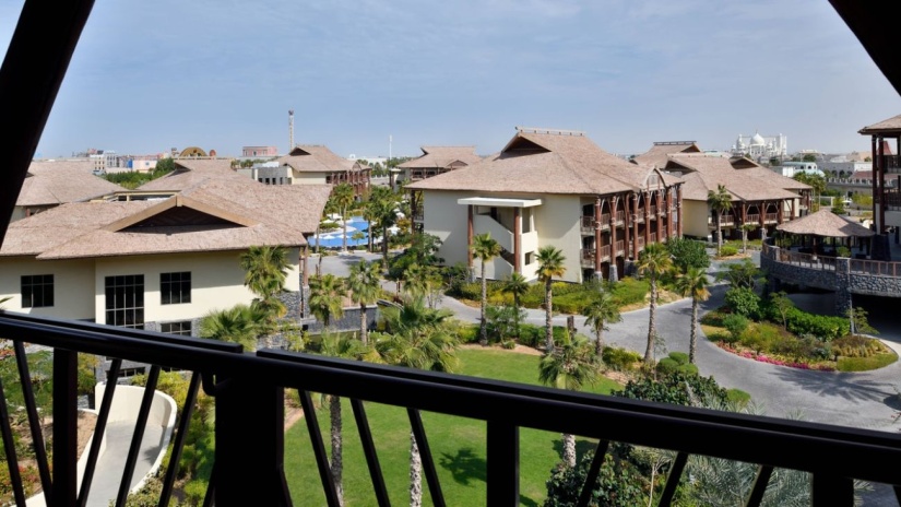 Двуспальная кровать king-size, ванная комната, балкон, вид на курорт, посещение парка Dubai Parks and Resorts;