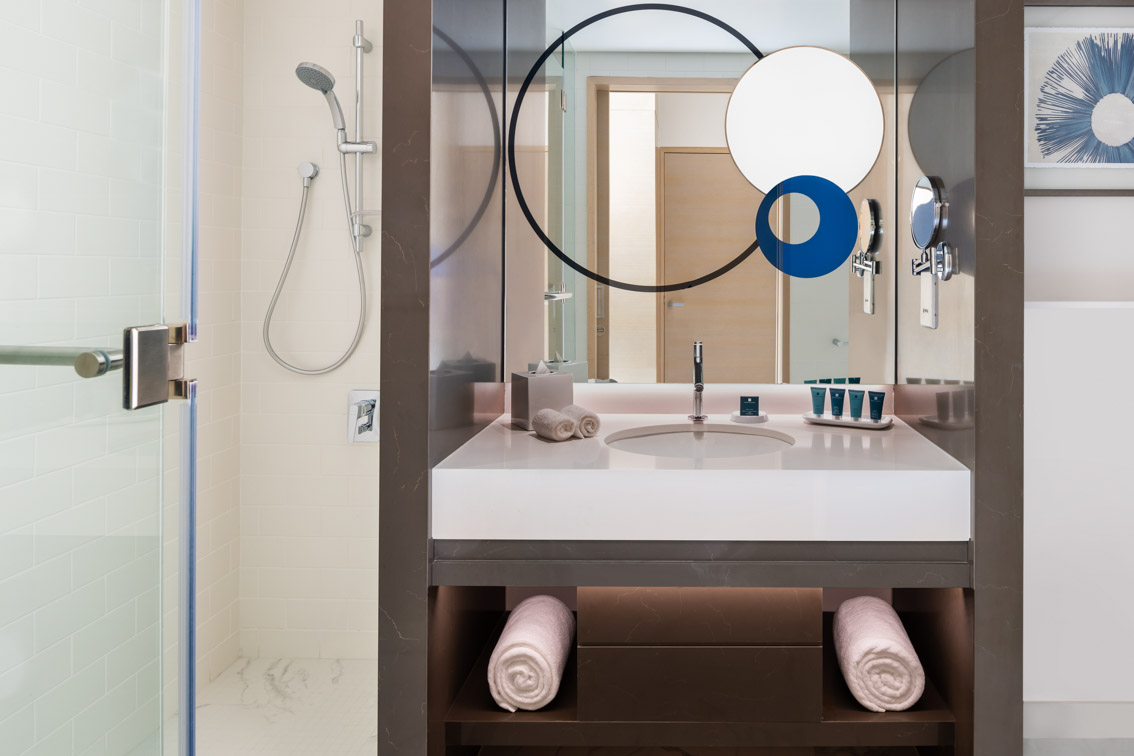 Расположены на 12 – 14 этажах, двуспальная кровать king-size или 2 односпальные кровати, кресло в номере с двуспальной кроватью, ванная комната с ванной или душем, вид на залив, эксклюзивный доступ в лаундж-клуб;