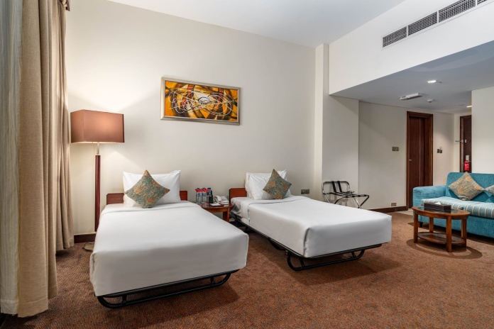 В номерах: телевизор, Wi-Fi, письменный стол, кофемашина, молитвенные коврики, утюг и гладильная доска, мини-бар и фен.