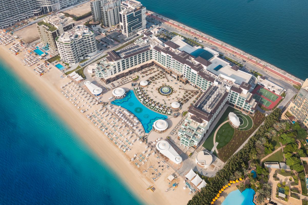 На 5 этаже в центре здания, 4 спальни: 2 двуспальные кровати king-size и 4 односпальные кровати, просторная гостиная комната, отдельная столовая, кухня, гардеробная, ванные комнаты, балкон, вид на море, доступ в эксклюзивный лаунж-клуб Taj (в номере 1 раскладной диван 120 х 190 см и 2 раскладных дивана - 80 х 190 см).