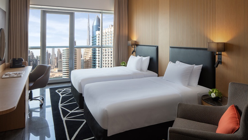 Располагаются на 14 этаже и выше, двуспальная кровать king-size или 2 односпальные кровати, ванная комната с душем, балкон, вид на Бурдж-Халифу, бесплатный доступ в VIP-лаунж отеля;