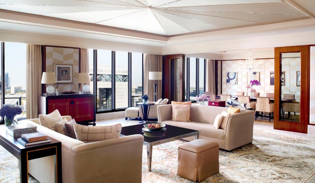 Номера расположены на 13-14 этажах, спальня с двуспальной кроватью king-size, отдельная гостиная комната, обеденный стол на 10 человек, кухня, ванная комната с ванной и душем, гостевая ванная комната, доступ в клубный лаунж, план номера;