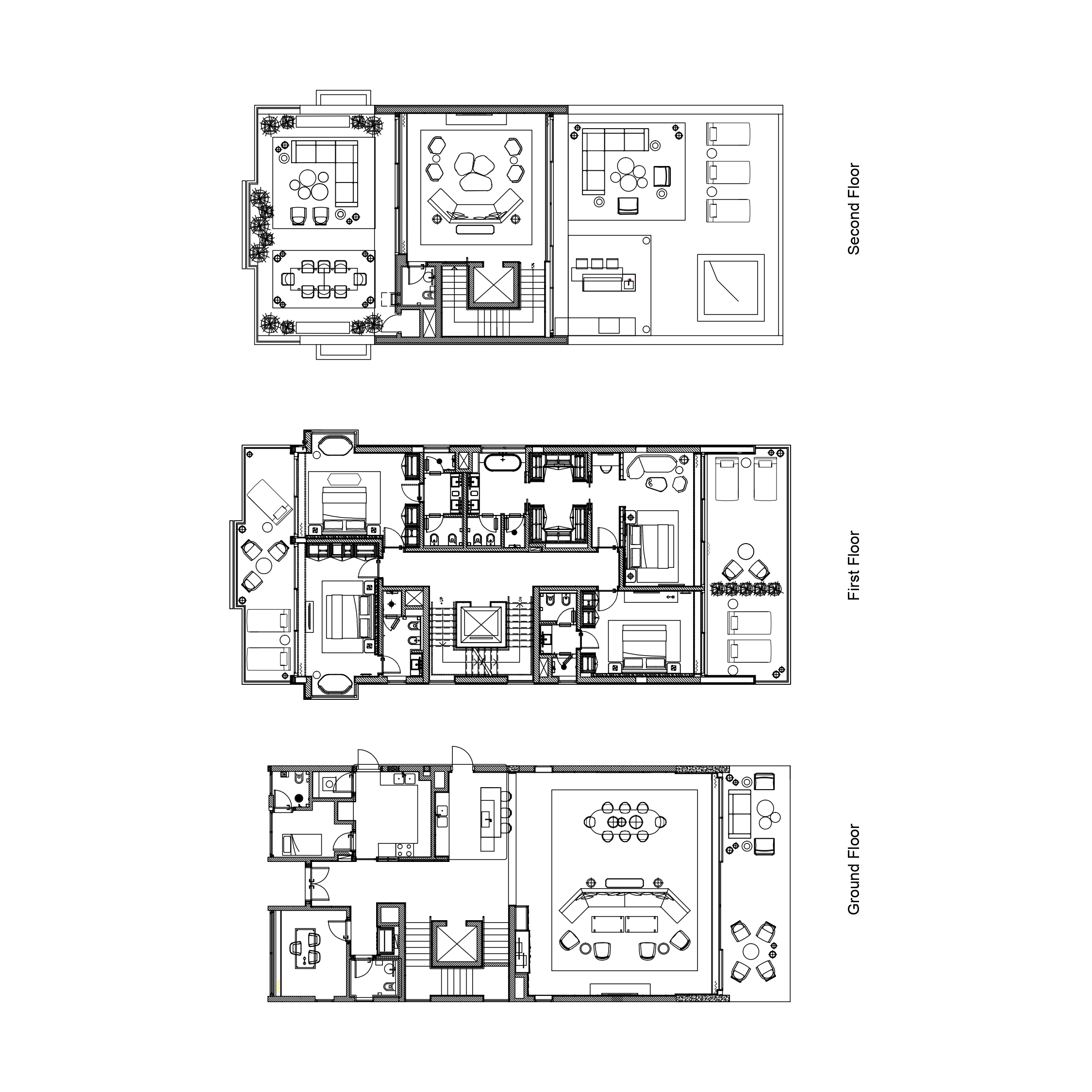 3-х этажная вилла, 5 спален с двуспальными кроватями king-size, ванные комнаты, гостиная комната с обеденной зоной и кухней, терраса, персональный бассейн, джакузи, выход на пляж, см. план номера;