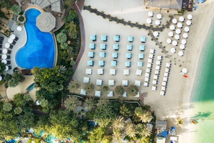 Le Meridien Mina Seyahi Beach Resort & Waterpark – 5-звёздочный курорт расположен в районе Jumeirah Beach Residence (JBR) на берегу Аравийского залива с 700 м приватного пляжа и видами на Dubai Marina и Palm Islands.