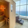 2 спальни: двуспальная и 2 односпальные кровати, гостиная комната с диванами и обеденным столом, мини-кухня с микроволной печью и кофемашной, сауна, джакузи, персональный крытый бассейн, тренажёры, вид на океан.