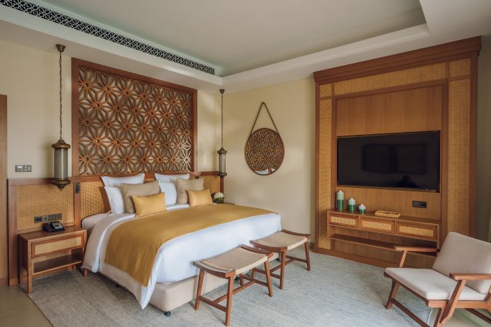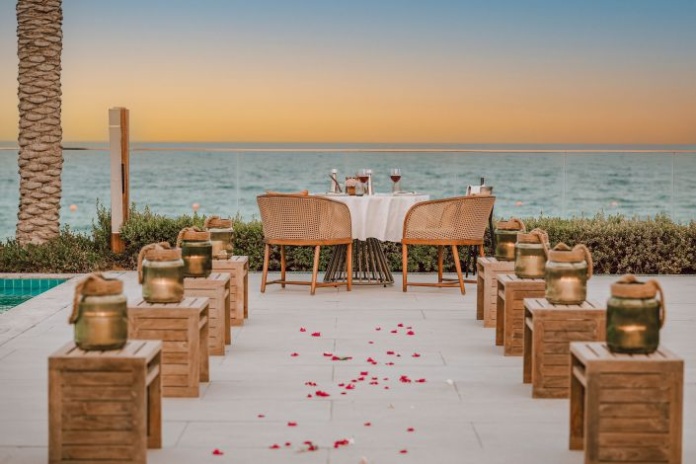 Кулинарная концепция включает ресторан Aseelah с блюдами из морепродуктов и мяса на углях, Nafourah Lounge с арабским кофе и мятным чаем и Amara Bar у бассейна. Доступен приватный ужин на вилле.