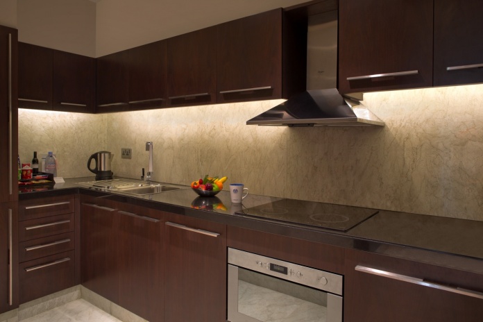 Номер - студия, двуспальная кровать king-size, мини-кухня, есть стиральная машинка, большие окна, ванная комната с ванной и душем, балкон в некоторых номерах;
