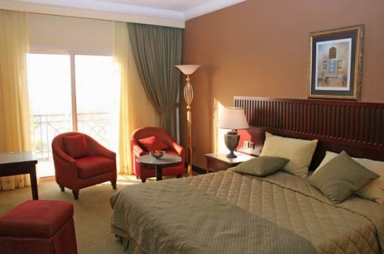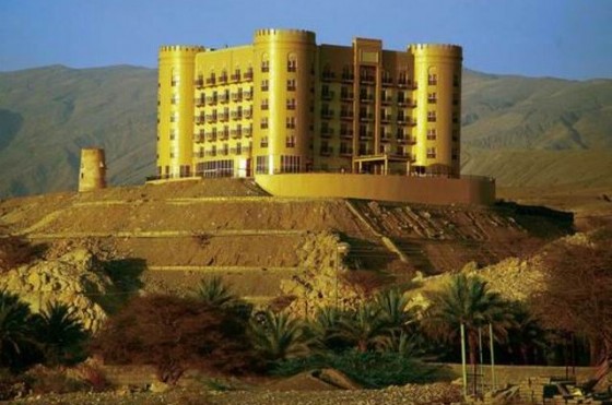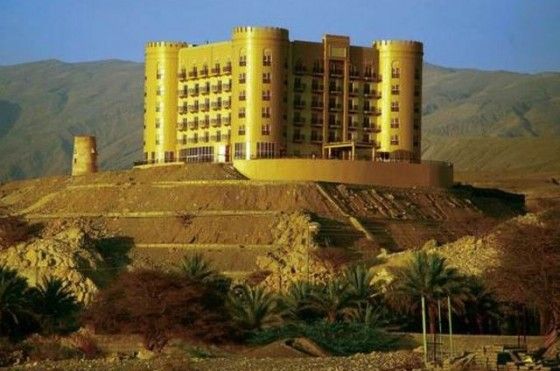 Отель построен рядом с природными горячими источниками, окружён горами, финиковыми пальмами и пустыней.