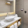 Номера расположены на верхних этажах, двуспальная кровать king-size, гостиная зона с диваном-софа, ванная комната с ванной и душем, меблированный балкон, панорамный вид;