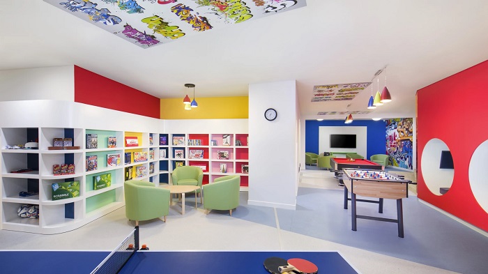 • Клуб для подростков (игровые приставки, интерактивный караоке-бокс и маникюрный салон, платно);