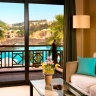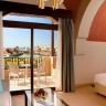 Номера расположены группами в левой части отеля, двуспальная кровать king-size или 2 односпальные кровати, гостиная зона с диваном-софа, ванная комната с душем, балкон или терраса, вид на курорт;