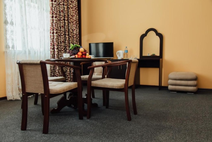 В номерах: кондиционер, чайник, бутилированная питьевая вода, телевизор, набор для приготовления чая/кофе, банные принадлежности, фен, мини-холодильник, телефон.