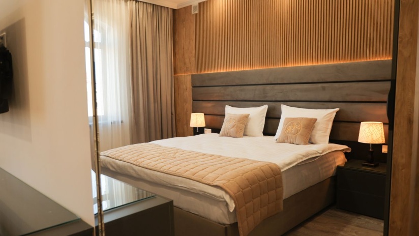 В номерах: Wi-Fi, холодильник, чайник, телевизор, шкаф, телефон, сейф, банные принадлежности.