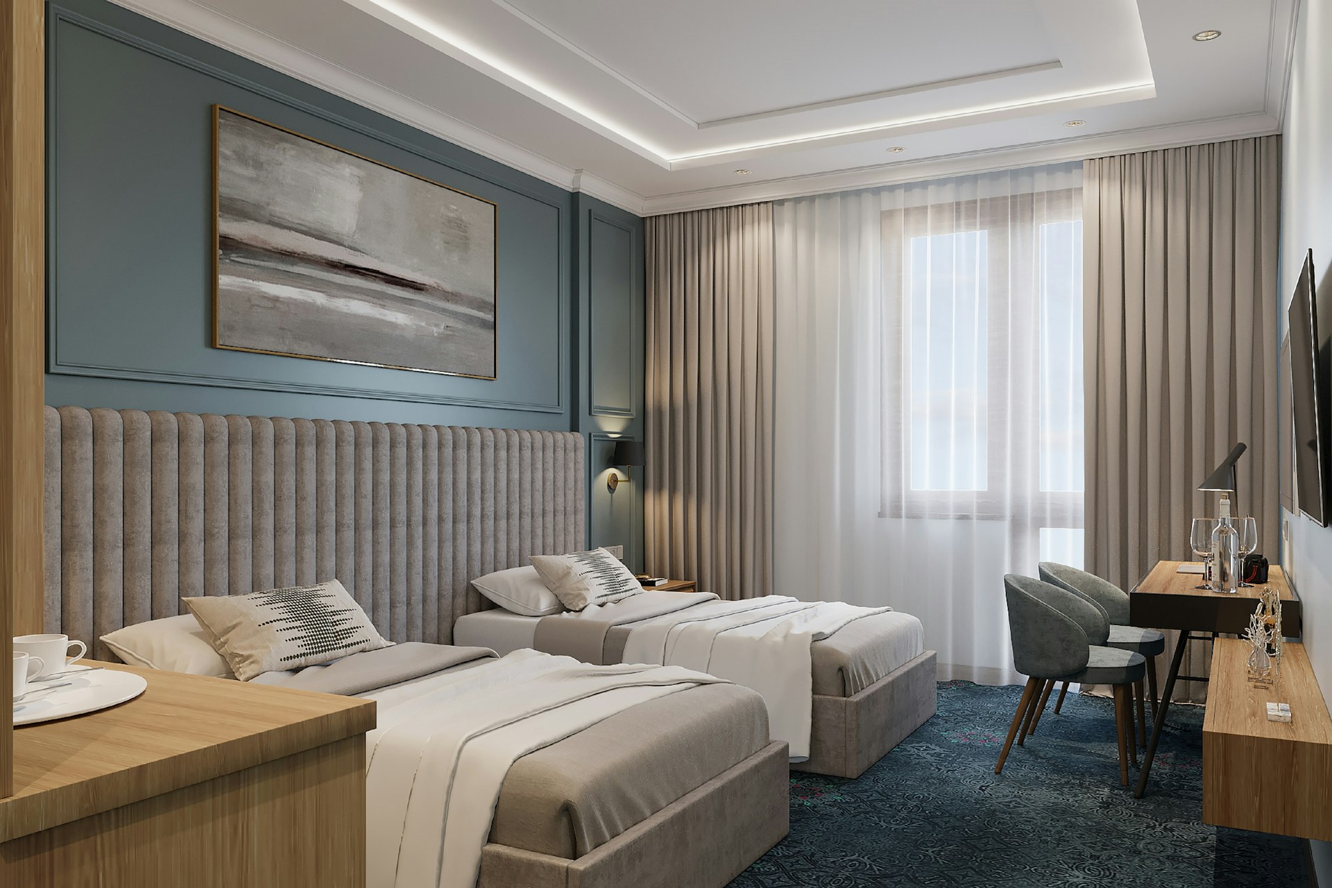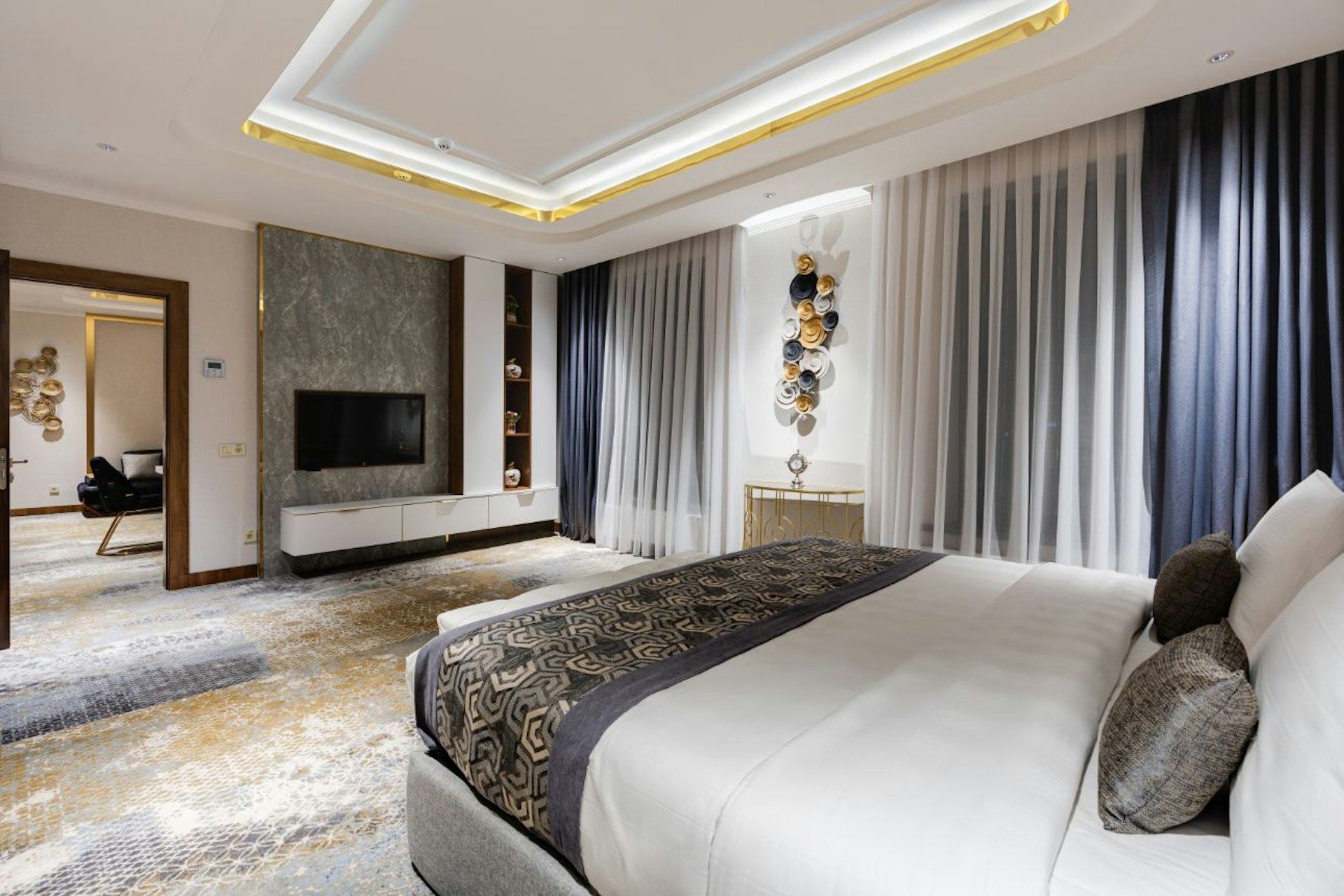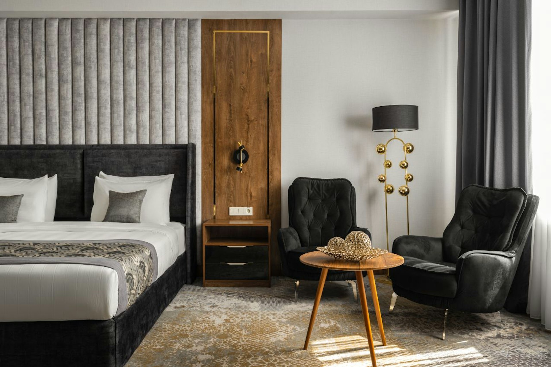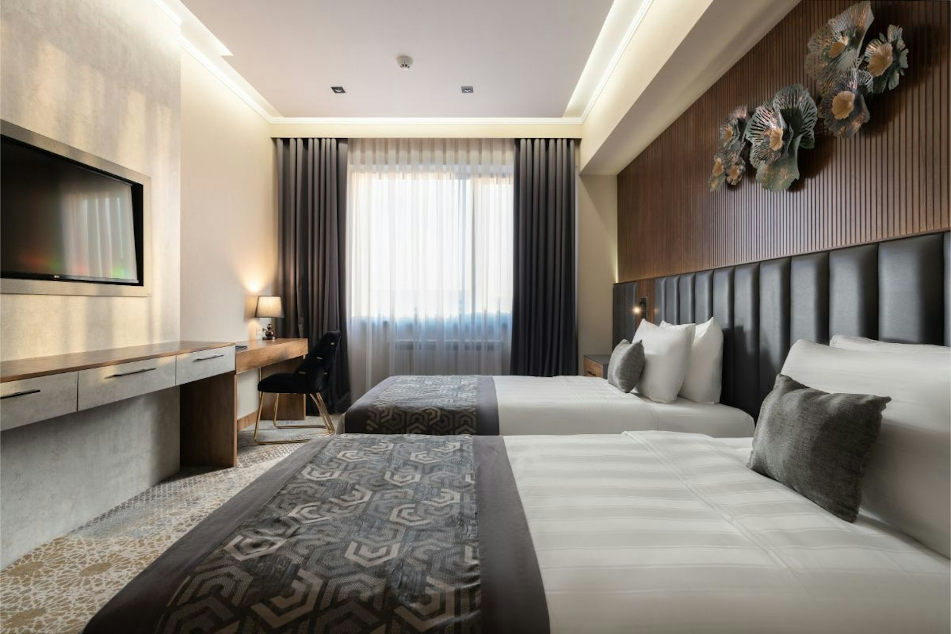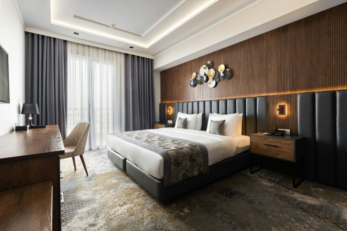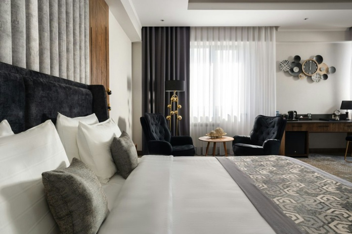 В номерах: шторы blackout, фен, банные принадлежности, звуконепроницаемые окна, телевизор со спутниковыми каналами, Wi-Fi, сейф, халат, мини-бар, тапочки, кондиционер, утюг и гладильная доска, набор для приготовления чая/кофе.