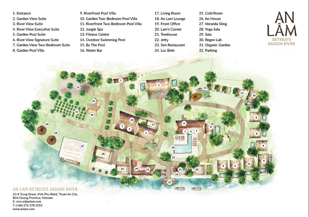 Бутик-отель An Lam Retreat Saigon с уникальным дизайном, сочетающим деревянную архитектуру с природной средой, расположен вдоль реки Сайгон, в 15 км от оживлённого центра Хошимина. К услугам гостей просторные номера, открытый бассейн, тренажёрный зал, спа-центр, а также предлагаются возможности для проведения деловых торжественных мероприятий.