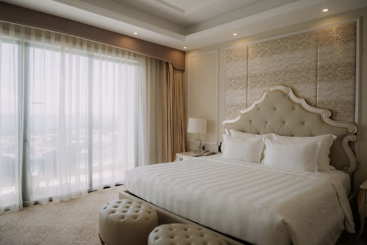 В номерах: Wi-Fi, телевизор, банные принадлежности, фен, письменный стол с эргономичным стулом, сейф, тапочки, бутилированная питьевая вода, кондиционер, мини-бар.