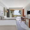 Просторный люкс на берегу моря: отдельная спальня с двуспальной кроватью king size, отдельная гостиная с обеденной зоной на 4 персоны и мини-кухней с раковиной и микроволновой печью, ванная комната с ванной и душем, меблированная терраса с обеденной зоной (на 4 персоны) на открытом воздухе и собственный бассейн, прямой выход на пляж, вид на море; план номера;