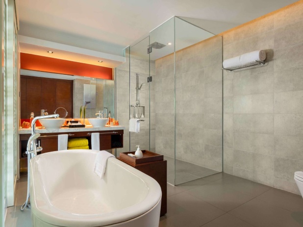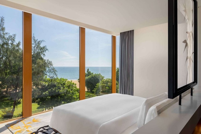 В номерах: Wi-Fi, кондиционер, окна от пола до потолка, телевизор, телефон, сейф, рабочий стол, лампа, диван/кушетка, стул/кресло, журнальный столик, тапочки, халаты, туалетно–косметические принадлежности, тропический душ, весы в ванной, зеркала для макияжа, фен, мини–холодильник/ мини-бар (платно), бесплатная бутилированная вода, принадлежности для чая/кофе, электрочайник, кофемашина Nespresso (в сьютах с мини-кухней), гладильные принадлежности, душ на открытом воздухе (для сьютов с бассейном), бесплатные велосипеды для гостей отеля.