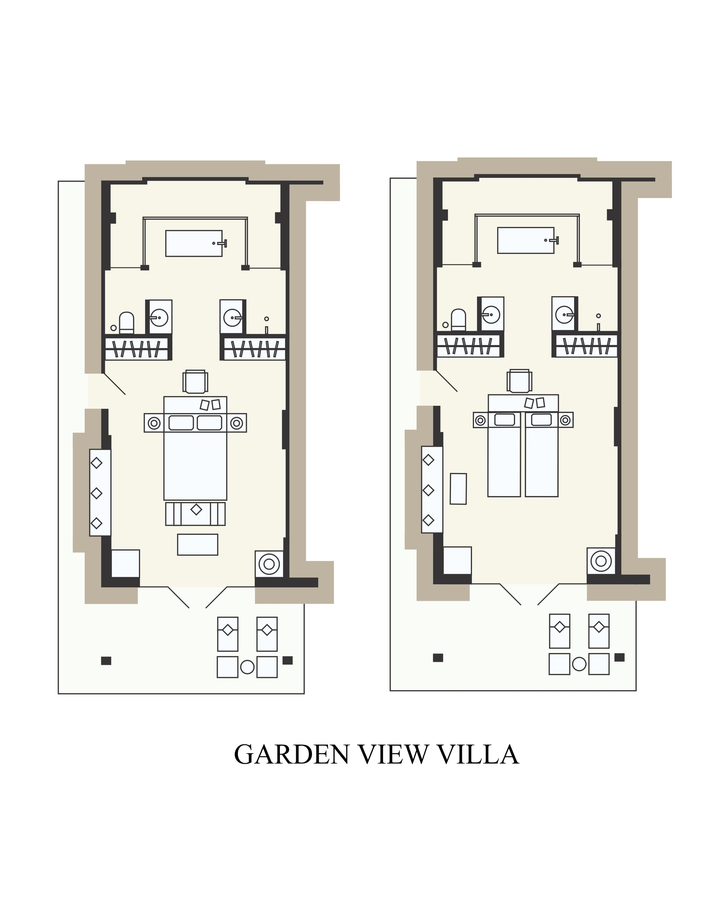 Центральное расположение между бассейном курорта и пляжем среди пышных тропических садов, двуспальная кровать king-size или 2 односпальные кровати, гостиная зона с диваном-кушеткой, ванная комната с ванной и душем, терраса, вид на сад, см.план номера;