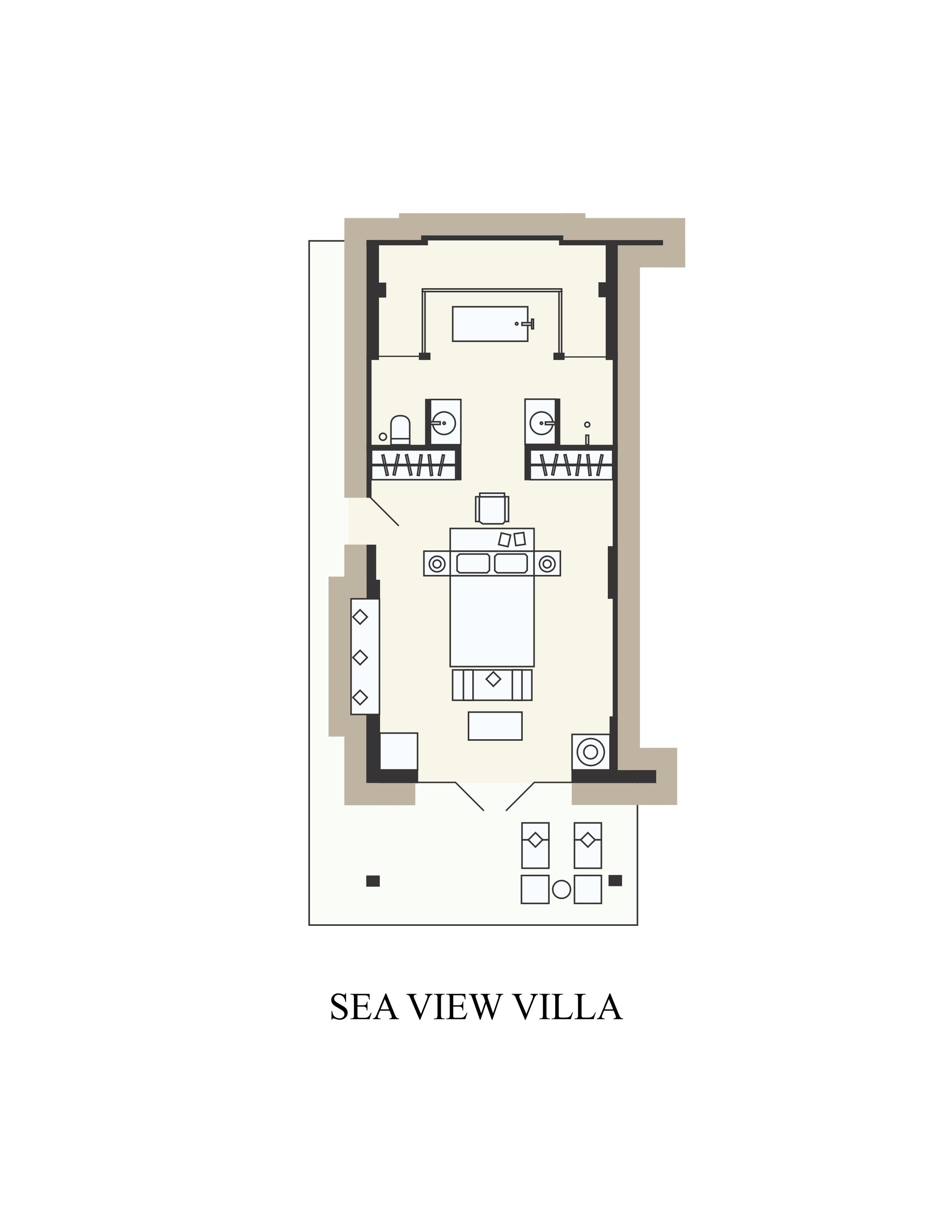 - 8 номеров Sea View Villa (50 м², макс. 3 или 2+2).