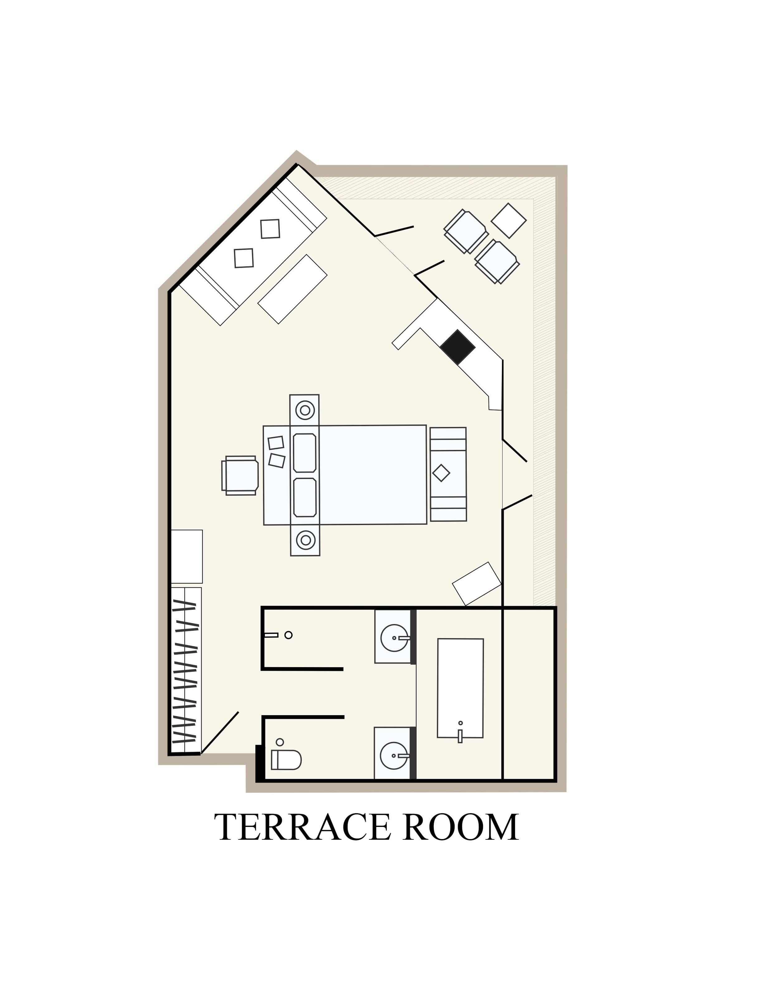 - 6 номеров Terrace Room (72 м², макс. 3 или 2+2).