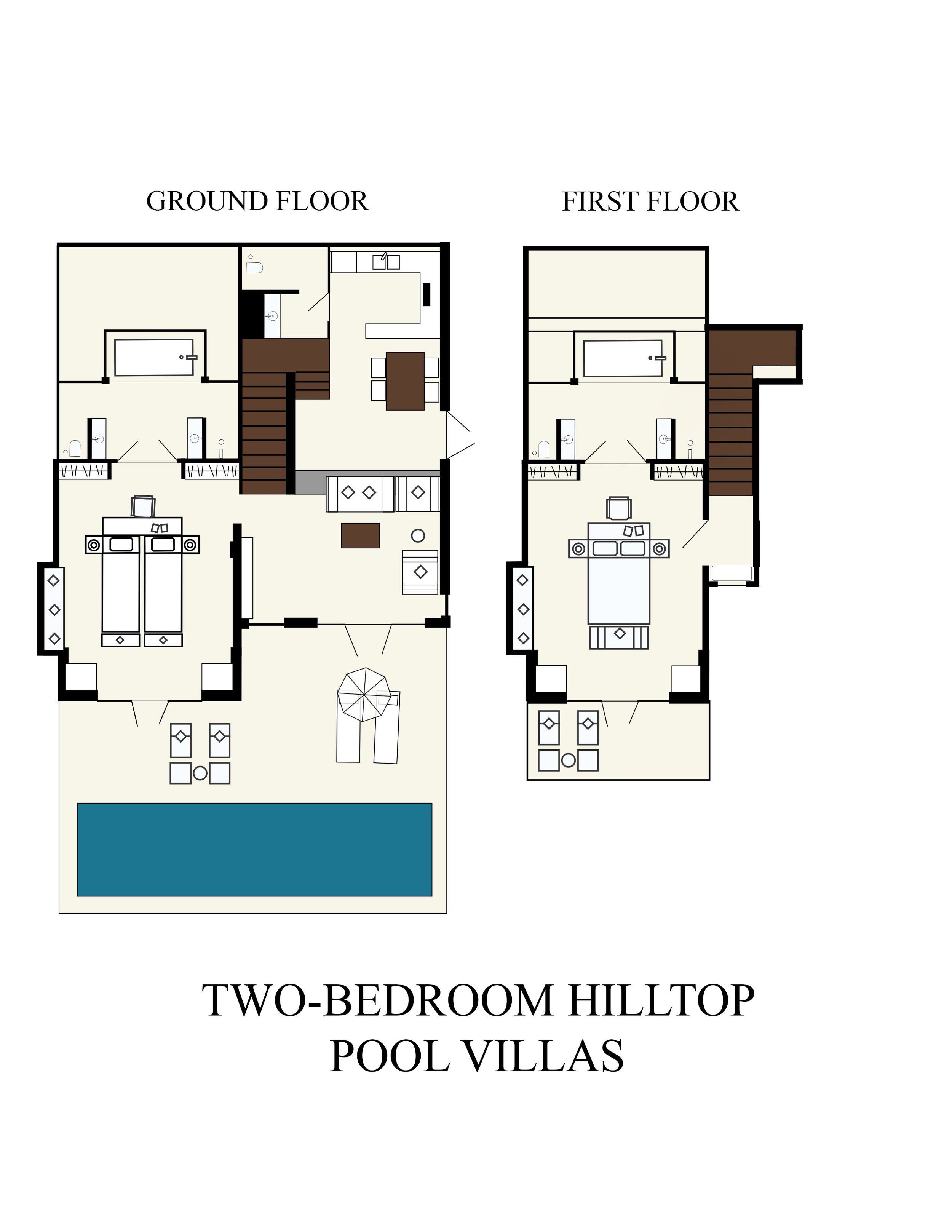- 6 номеров Two Bedroom Hill Top Pool Villa (232 м², макс. 4+2).