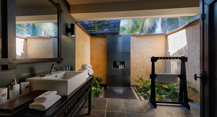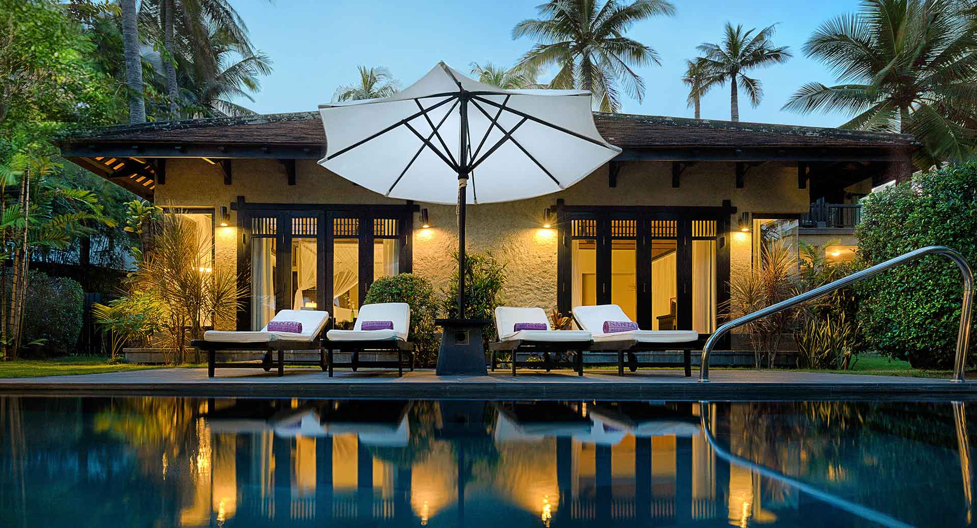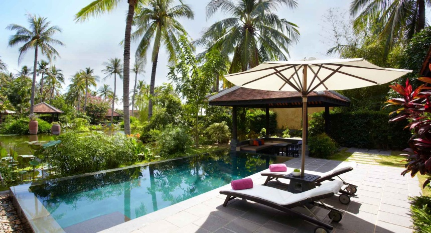 Отдельные виллы с бассейном расположены в пышных садах и разбросаны по всему курорту, двуспальная кровать king-size, гостиная зона с креслами, частично открытая ванная комната с ванной и душем, персональный бассейн, терраса, вид на океан;