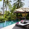 Состоит из двух отдельных вилл, расположенных в саду, 2 спальни: двуспальная кровать king-size и две односпальные кровати, 2 частично открытые ванные комнаты, персональный бассейн, терраса, вид на бассейн;