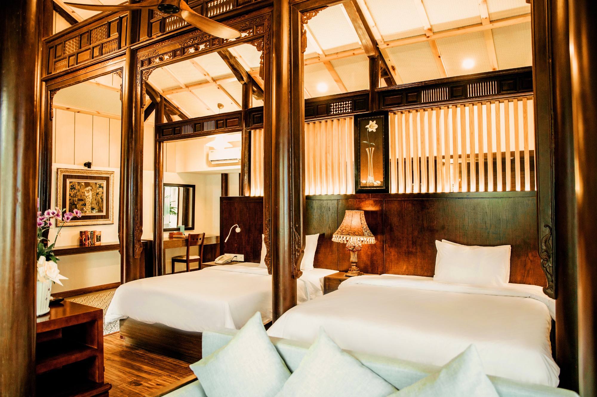 В номерах: телевизор с кабельными каналами, письменный стол, приветственные конфеты, сейф, зонт, телефон, кондиционер, бесплатный чай, питьевая вода и кофе, чайник, фен, тапочки, Wi-Fi.