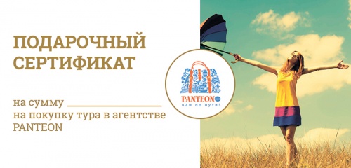 Подарочный сертификат оформляется на любую сумму, которую можно использовать при покупке тура или авиабилетов.
