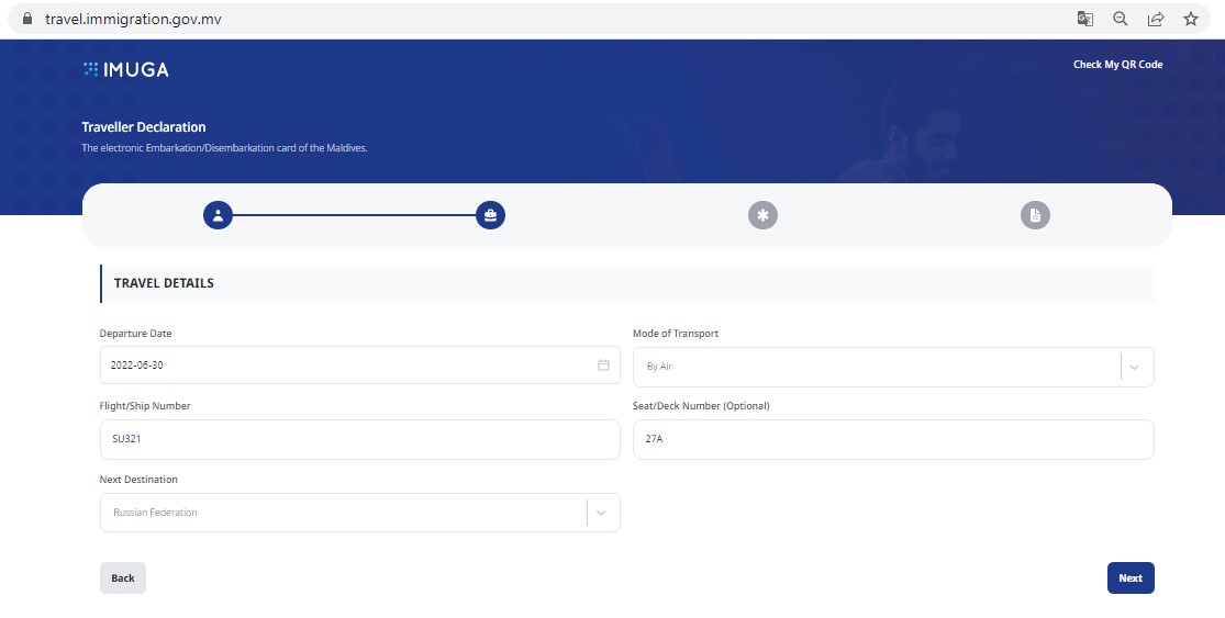 На сайте миграционной службы Мальдивских островов есть возможность проверить QR-код по номеру загранпаспорта, фамилии туриста и дате вылета. Эта функция может быть полезна тем, кто забыл сохранить QR-код: